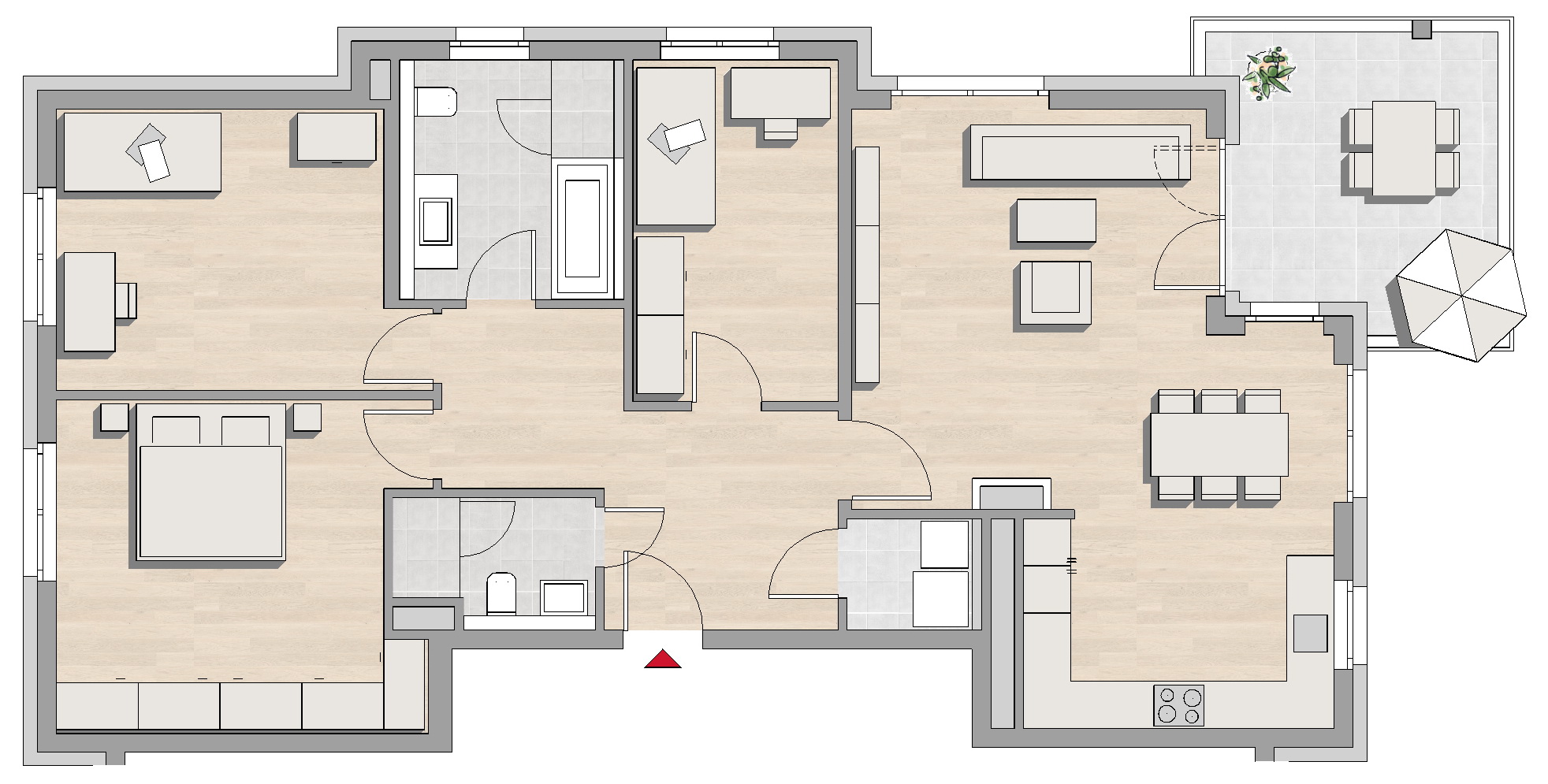 Das Gebäude ist mit viel Gefühl in das Umfeld eingefügt. Die modernen Wohnungen überzeugen durch ihre gelungene Verbindung von Licht, Exklusivität und optimaler Nutzungsmöglichkeit. Die Wirkung der bodentiefen Fenster mit feinen Unterteilungen wird durch die transparenten Balkonbrüstungen unterstrichen. Farben, Formen und Materialien sind harmonisch aufeinander abgestimmt.