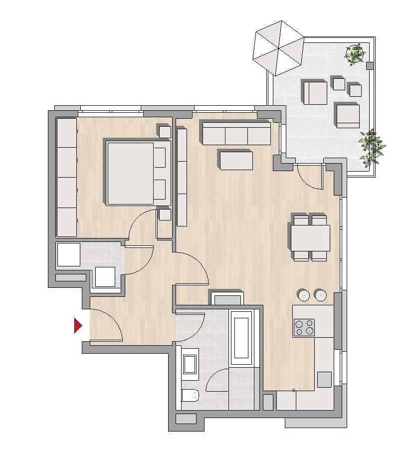 Das 4-geschossige Mehrfamilienhaus gewinnt durch die klare Gliederung der Fassade. Die Wohnungen überzeugen durch ihre gelungene Verbindung von Licht, Exklusivität und optimaler Nutzungsmöglichkeit. Die Wirkung der bodentiefen Fenster mit der feinen Unterteilung wird durch die transparenten Balkonbrüstungen unterstrichen. Farben, Formen und Materialien sind aufeinander abgestimmt. Eine besondere Atmosphäre entsteht in den Dachgeschoss-Wohnungen.