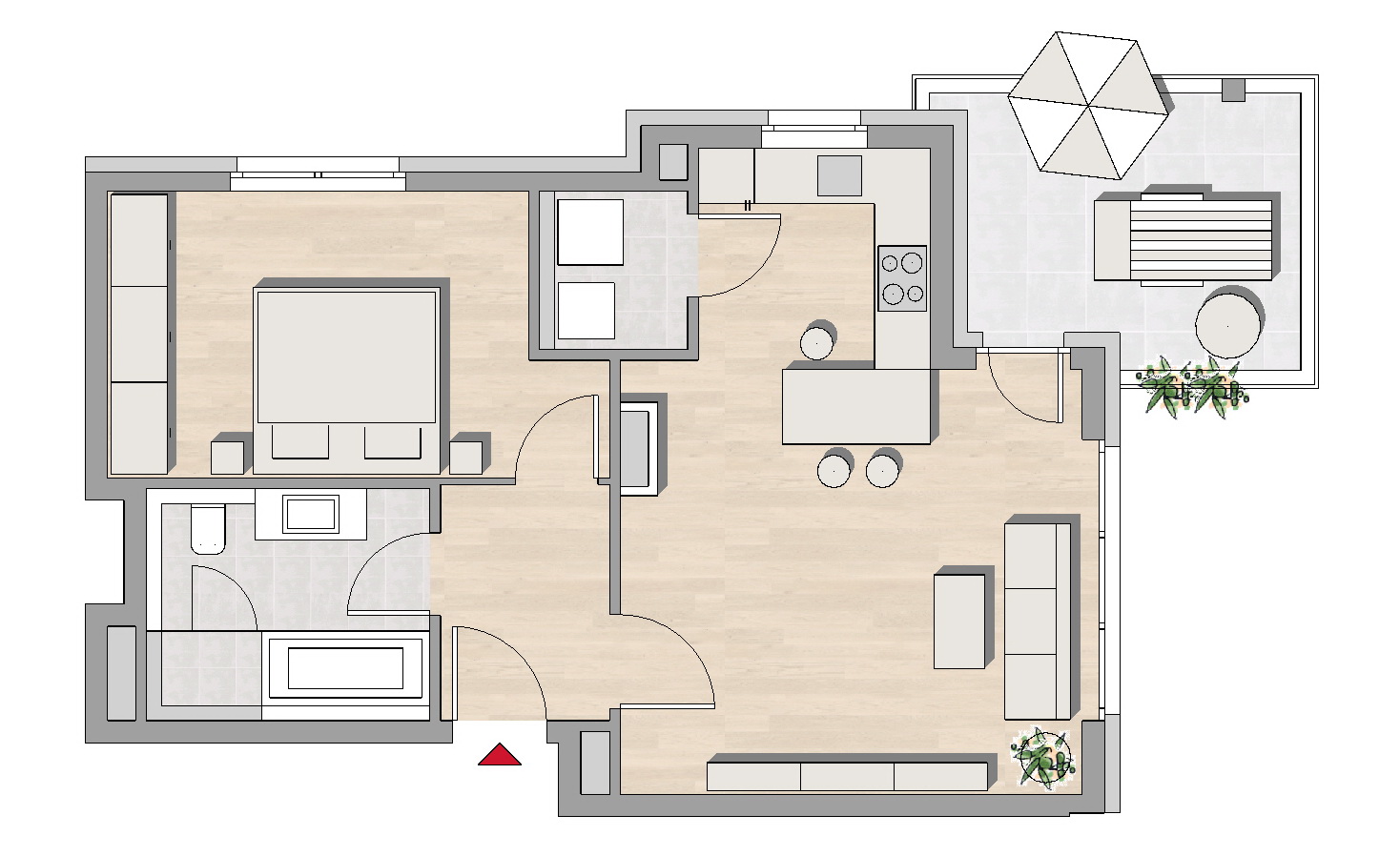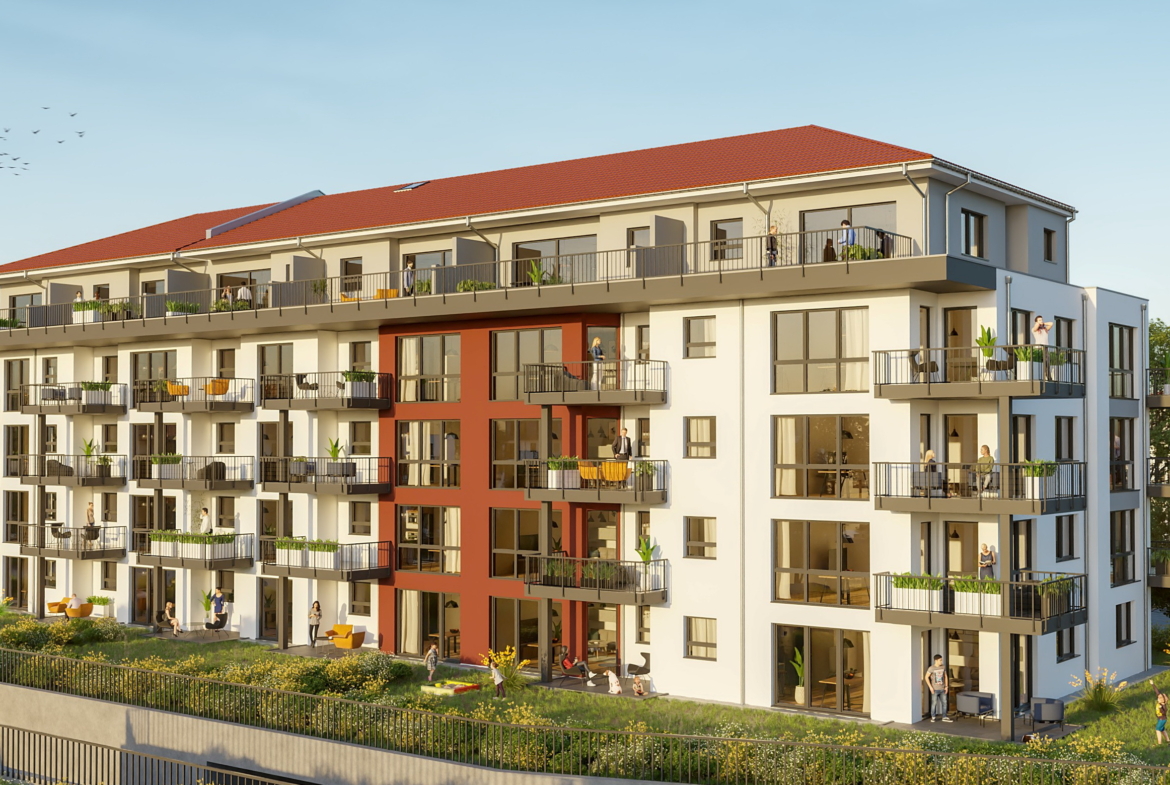 Das 4-geschossige Mehrfamilienhaus gewinnt durch die klare Gliederung der Fassade. Die Wohnungen überzeugen durch ihre gelungene Verbindung von Licht, Exklusivität und optimaler Nutzungsmöglichkeit. Die Wirkung der bodentiefen Fenster mit der feinen Unterteilung wird durch die transparenten Balkonbrüstungen unterstrichen. Farben, Formen und Materialien sind aufeinander abgestimmt. Eine besondere Atmosphäre entsteht in den Dachgeschoss-Wohnungen.