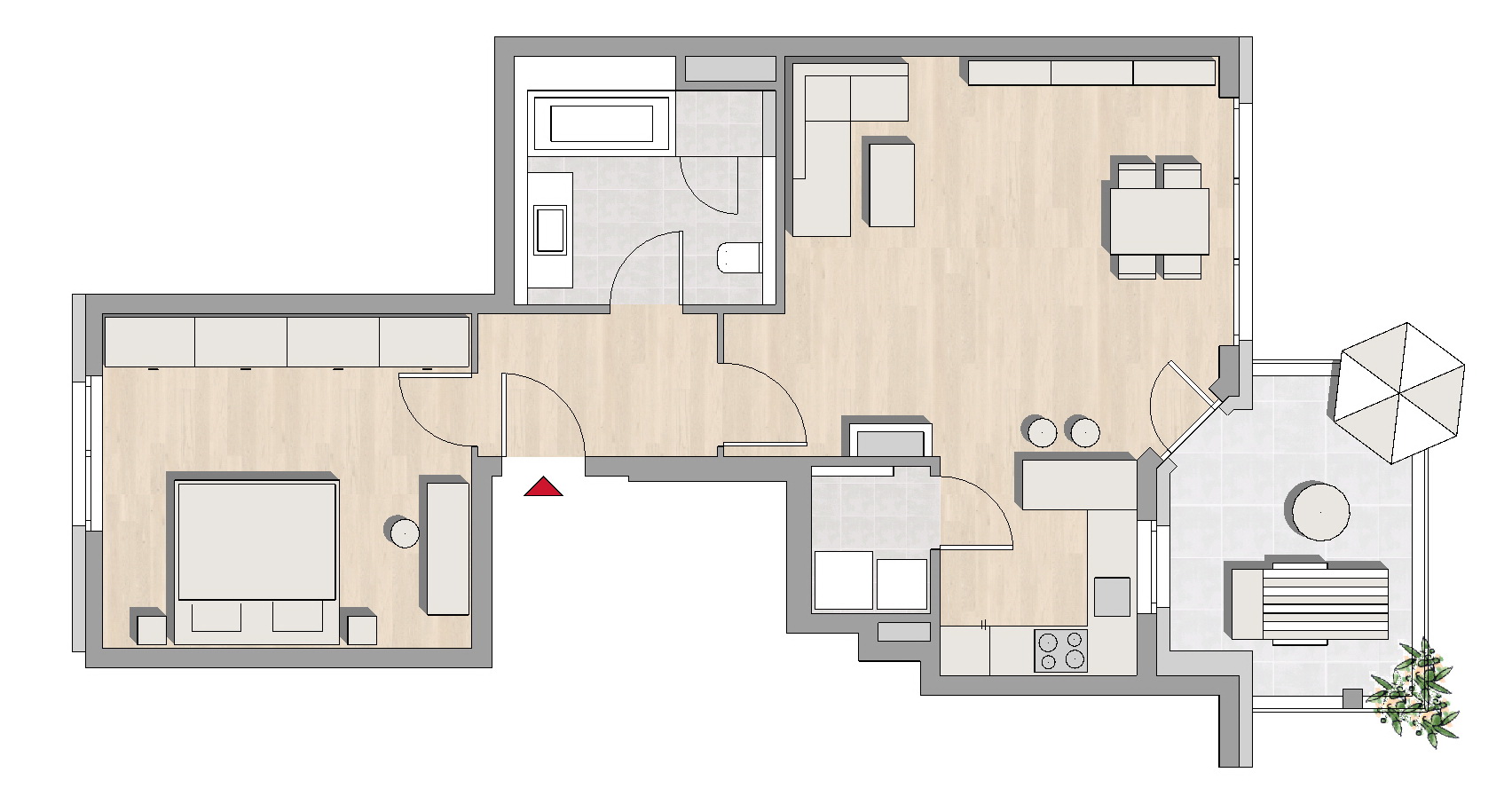 Das 4-geschossige Mehrfamilienhaus gewinnt durch die klare Gliederung der Fassade. Die Wohnungen überzeugen durch ihre gelungene Verbindung von Licht, Exklusivität und optimaler Nutzungsmöglichkeit. Die Wirkung der bodentiefen Fenster mit der feinen Unterteilung wird durch die transparenten Balkonbrüstungen unterstrichen. Farben, Formen und Materialien sind aufeinander abgestimmt. Eine besondere Atmosphäre entsteht in den Dachgeschoss-Wohnungen.