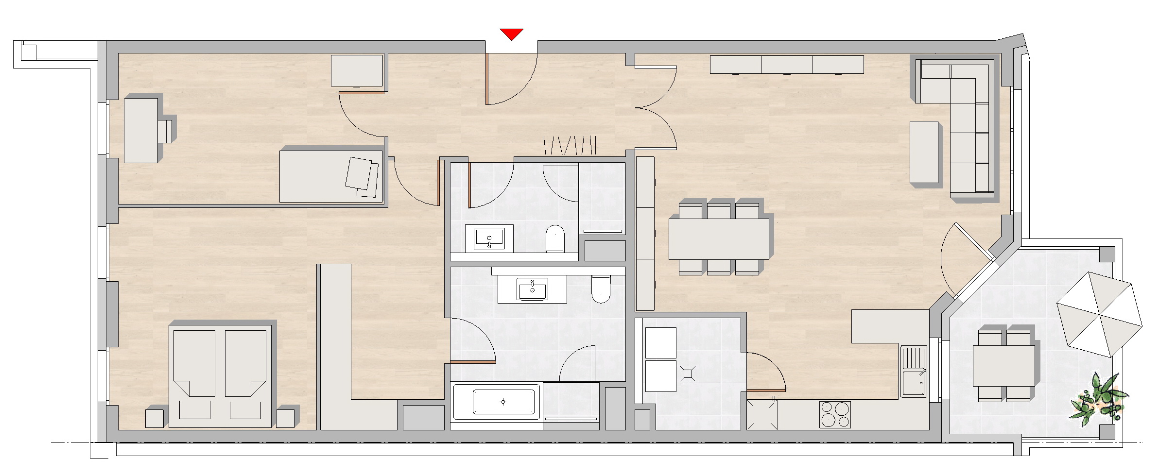 Das moderne Mehrfamilienhaus gewinnt durch die klare Gliederung der Fassade. Diese ist eine hochwertige Interpretation klassischer Frankfurter Stadtarchitektur. Die Wohnungen überzeugen durch ihre gelungene Verbindung von Licht, Exklusivität und ihrer optimalen Nutzungsmöglichkeit. Die großen Fensterflächen garantieren viel Licht in allen Räumen. Farben, Formen und Materialien sind harmonisch aufeinander abgestimmt.
