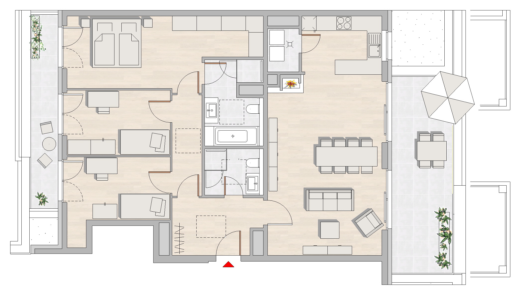 Das moderne Mehrfamilienhaus gewinnt durch die klare Gliederung der Fassade. Diese ist eine hochwertige Interpretation klassischer Frankfurter Stadtarchitektur. Die Wohnungen überzeugen durch ihre gelungene Verbindung von Licht, Exklusivität und ihrer optimalen Nutzungsmöglichkeit. Die großen Fensterflächen garantieren viel Licht in allen Räumen. Farben, Formen und Materialien sind harmonisch aufeinander abgestimmt.