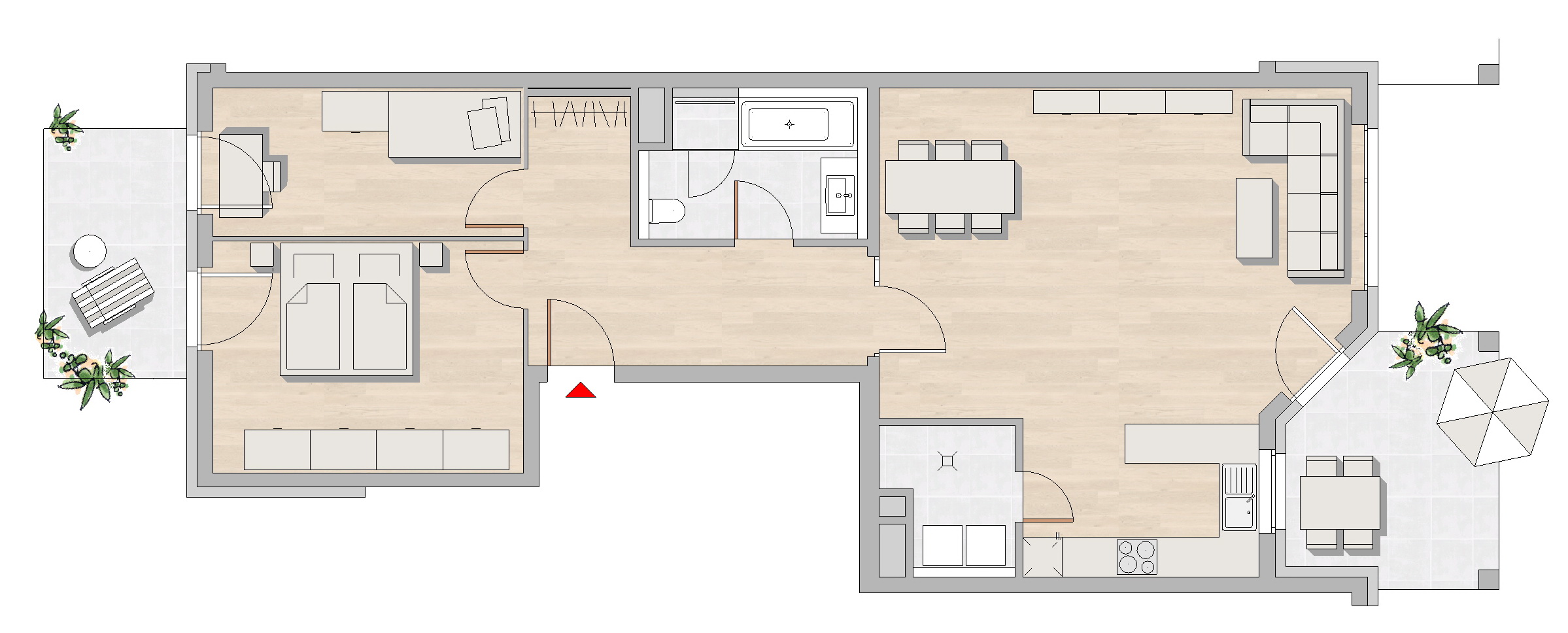 Das moderne Mehrfamilienhaus gewinnt durch die klare Gliederung der Fassade. Diese ist eine hochwertige Interpretation klassischer Frankfurter Stadtarchitektur. Die Wohnungen überzeugen durch ihre gelungene Verbindung von Licht, Exklusivität und ihrer optimalen Nutzungsmöglichkeit. Die großen Fensterflächen garantieren viel Licht in allen Räumen. Farben, Formen und Materialien sind aufeinander abgestimmt.
