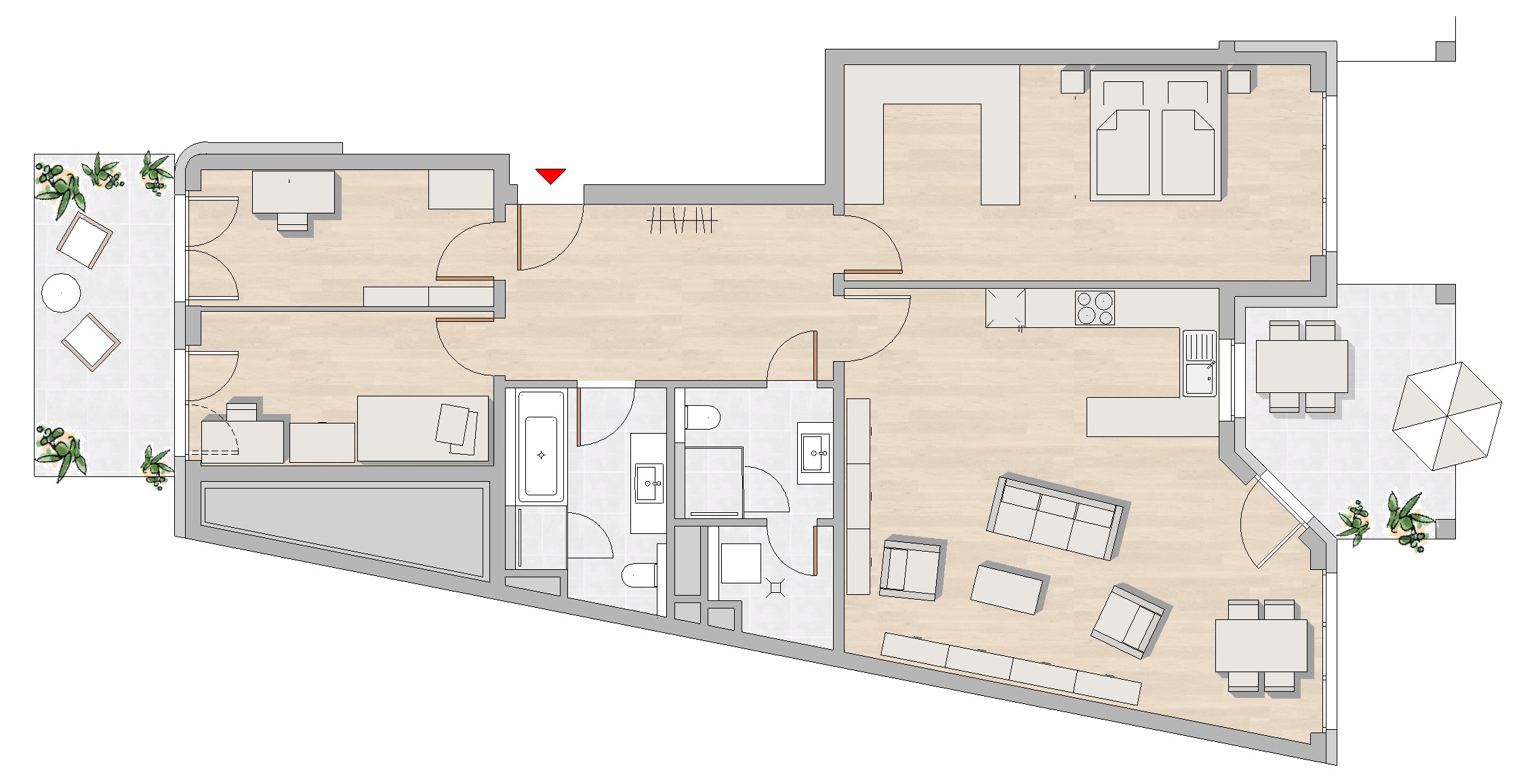 Das moderne Mehrfamilienhaus gewinnt durch die klare Gliederung der Fassade. Diese ist eine hochwertige Interpretation klassischer Frankfurter Stadtarchitektur. Die Wohnungen überzeugen durch ihre gelungene Verbindung von Licht, Exklusivität und ihrer optimalen Nutzungsmöglichkeit. Die großen Fensterflächen garantieren viel Licht in allen Räumen. Farben, Formen und Materialien sind aufeinander abgestimmt.