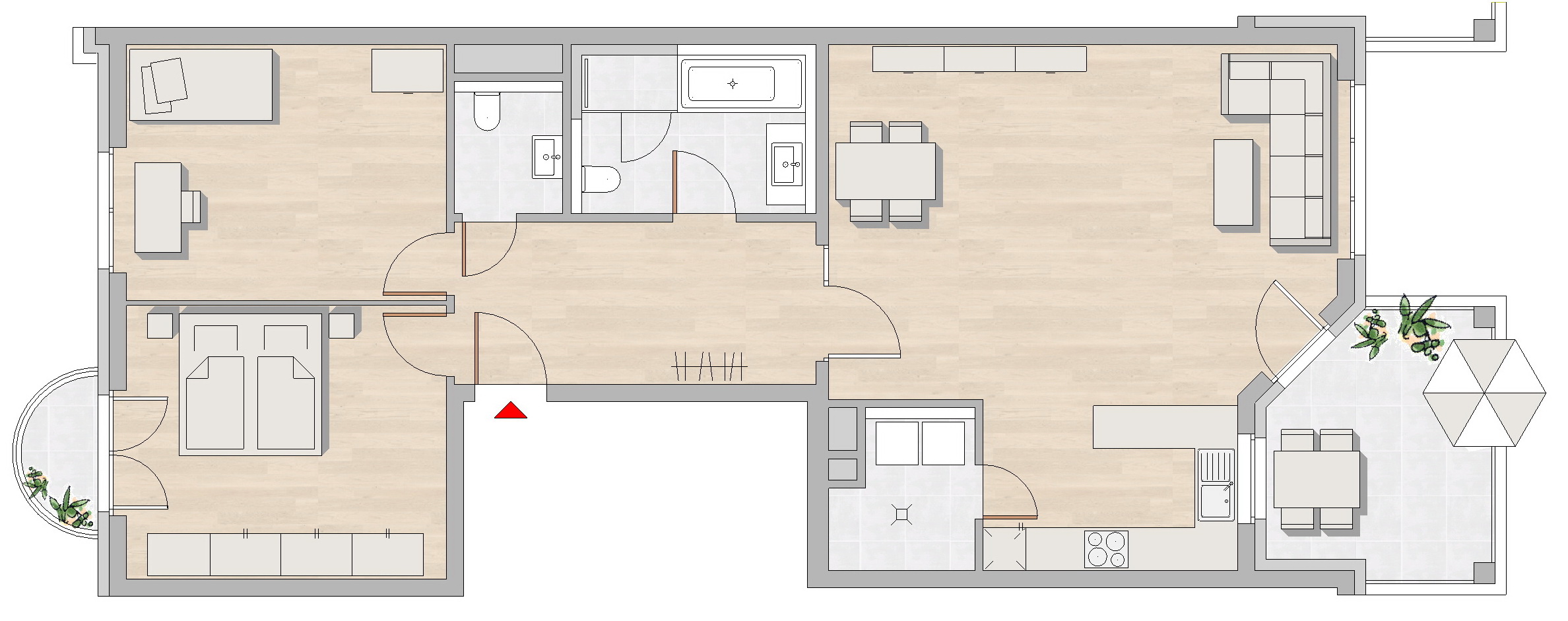 Das moderne Mehrfamilienhaus gewinnt durch die klare Gliederung der Fassade. Diese ist eine hochwertige Interpretation klassischer Frankfurter Stadtarchitektur. Die Wohnungen überzeugen durch ihre gelungene Verbindung von Licht, Exklusivität und ihrer optimalen Nutzungsmöglichkeit. Die großen Fensterflächen garantieren viel Licht in allen Räumen. Farben, Formen und Materialien sind aufeinander abgestimmt.