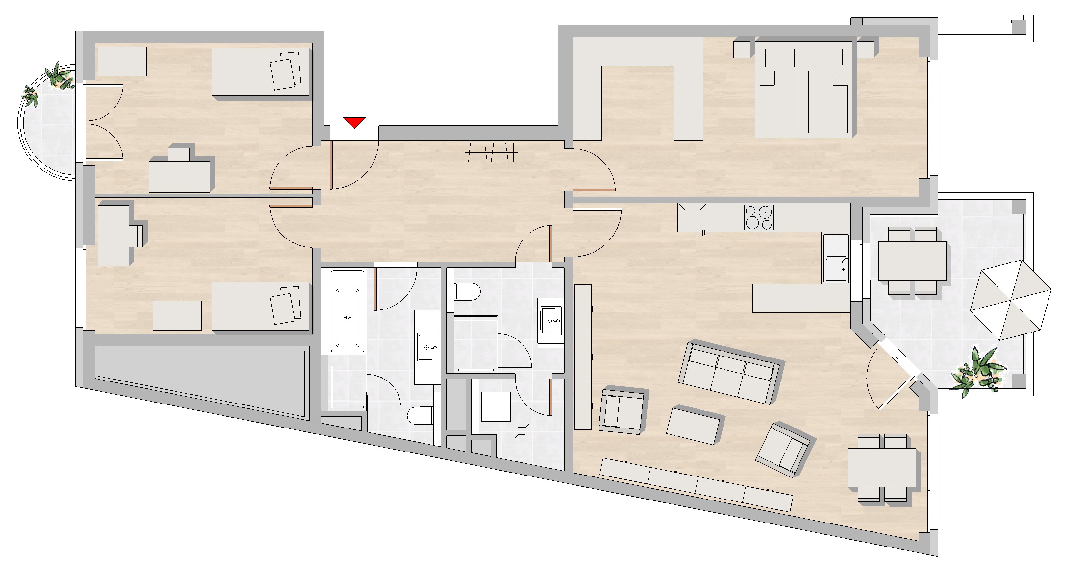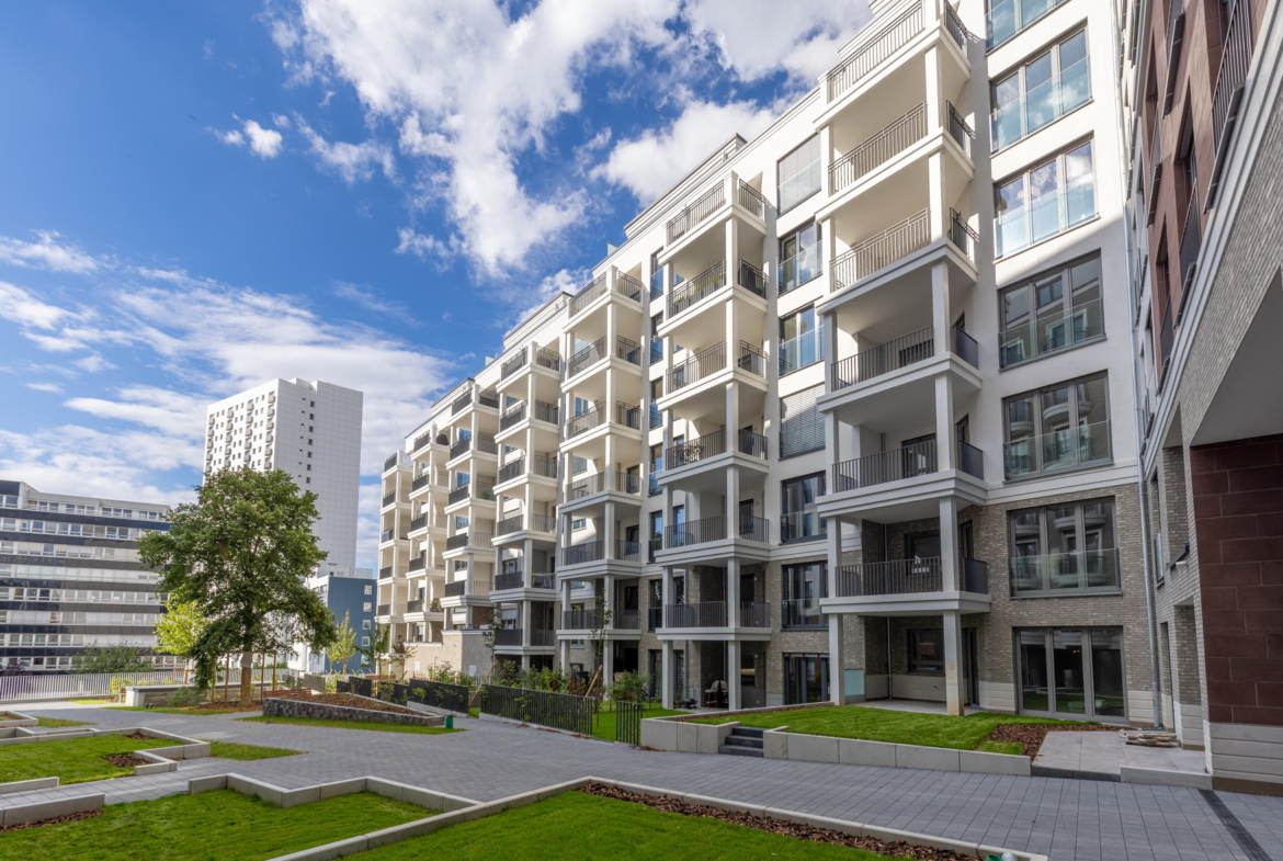 Das moderne Mehrfamilienhaus gewinnt durch die klare Gliederung der Fassade. Diese ist eine hochwertige Interpretation klassischer Frankfurter Stadtarchitektur. Die Wohnungen überzeugen durch ihre gelungene Verbindung von Licht, Exklusivität und ihrer optimalen Nutzungsmöglichkeit. Die großen Fensterflächen garantieren viel Licht in allen Räumen. Farben, Formen und Materialien sind aufeinander abgestimmt.