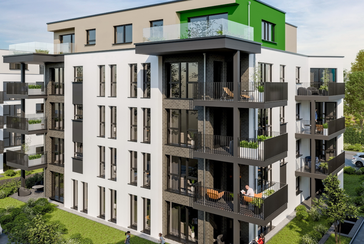 Das Gebäude ist mit viel Gefühl in das Umfeld eingefügt. Die modernen Wohnungen überzeugen durch ihre gelungene Verbindung von Licht, Exklusivität und optimaler Nutzungsmöglichkeit. Die Wirkung der bodentiefen Fenster mit feinen Unterteilungen wird durch die transparenten Balkonbrüstungen unterstrichen. Farben, Formen und Materialien sind harmonisch aufeinander abgestimmt.