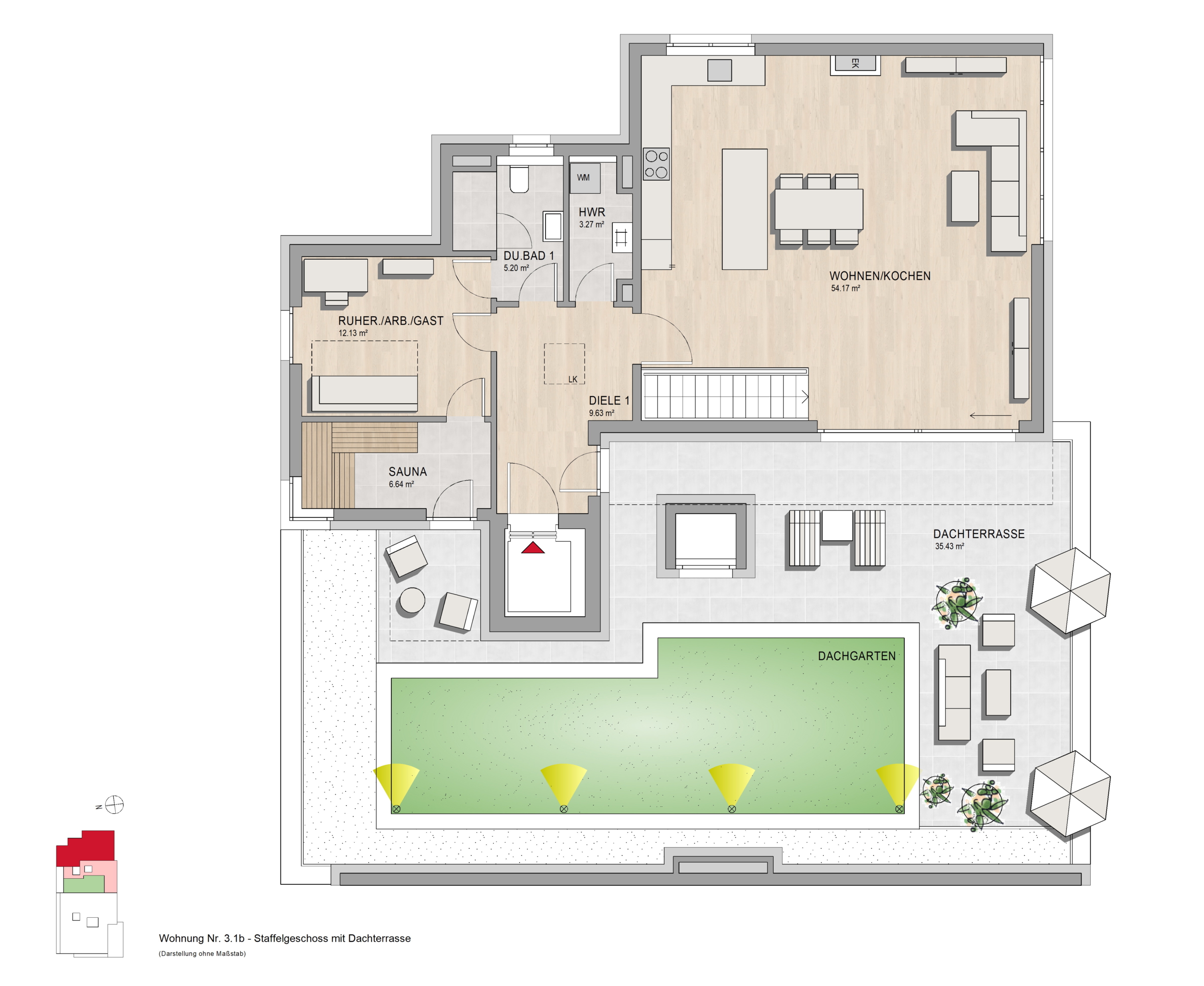 Die Architektur fügt sich durch klare und moderne Fassadengestaltung in ihr Umfeld ein. Die Grundrisse bieten aus lichtdurchfluteter Großzügigkeit und durchdachter Funktionalität ein harmonisches Zusammenspiel. Die bodentiefen Fenster und das transparente Balkongeländer unterstreichen die moderne Leichtigkeit. Farben, Formen und Materialien sind sorgfältig aufeinander abgestimmt und schaffen ein gelungenes Gesamtbild.