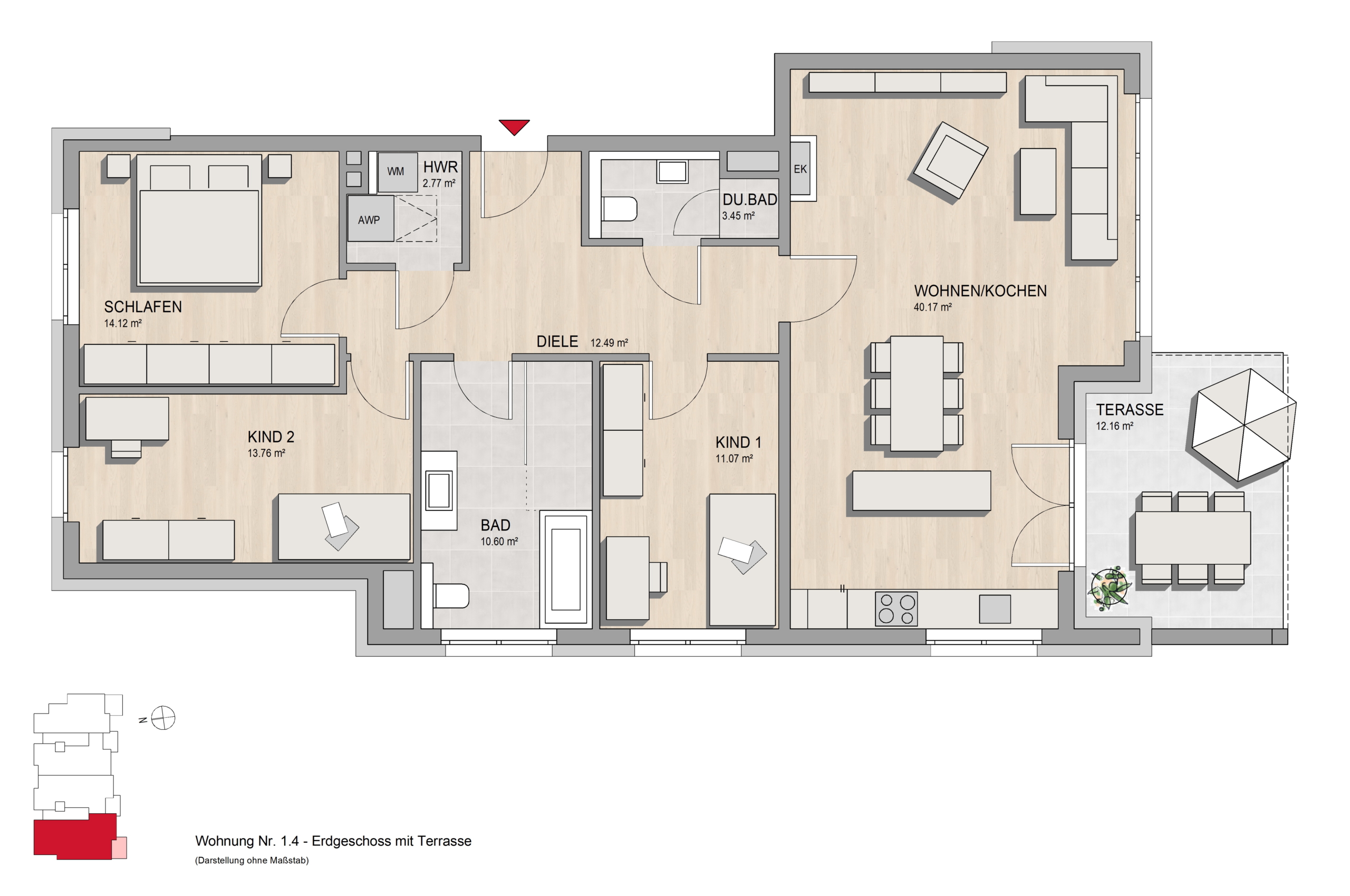 Die Architektur fügt sich durch klare und moderne Fassadengestaltung in ihr Umfeld ein. Die Grundrisse bieten aus lichtdurchfluteter Großzügigkeit und durchdachter Funktionalität ein harmonisches Zusammenspiel. Die bodentiefen Fenster und das transparente Balkongeländer unterstreichen die moderne Leichtigkeit. Farben, Formen und Materialien sind sorgfältig aufeinander abgestimmt und schaffen ein gelungenes Gesamtbild.