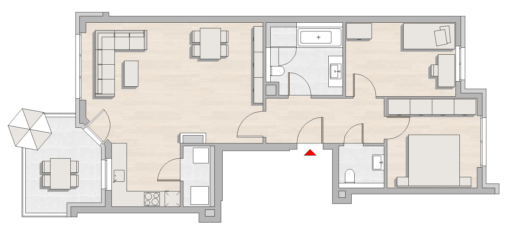 Die Wohnungseingangstüren in schallhemmender Ausführung erhalten einen Weitwinkelspion. Zu Ihrer Sicherung sind eine Mehrfachverriegelung sowie eine Türsprechanlage mit integriertem Videoüberwachungssystem vorgesehen. Die Bäder sind mit Badewanne und Dusche ausgestattet. Der bodengleich geflieste Duschbereich mit Ablaufrinne und Fliesenmulde erhält eine Klarglas Duschabtrennung. Über der Waschtischanlage wird eine großformatige Spiegelfläche montiert. Die Küchen, Bäder, Duschbäder und Gäste-WCs erhalten Fliesenboden mit passender Sockelleiste. Die Wohn- und Schlafbereiche sowie die Dielen und Flure erhalten Bodenbelag nach Mustervorlage ebenfalls mit passender Sockelleiste. Die Decken und die Wände der Wohnungen werden mit Raufaser tapeziert und weiß angelegt. Die Wohnung ist mit einem Multimedia-Verteilerkasten sowie einer großen Zahl Elektroschaltern (Großflächenschalter) und Steckdosen ausgestattet. In jeder Wohnung befinden sich Netzwerkdosen sowie TV- und Rundfunkanschlüsse. In jeder Wohnung wird im Hauswirtschaftsraum eine Abluftwärmepumpe für die Warmwasserbereitung, zum Heizen und Lüften installiert. Die Räume werden durch eine Fußbodenheizung beheizt. Der Wärme- und Wasserverbrauch wird pro Wohnung gemessen. Die Steuerung der Temperatur erfolgt in jedem Raum individuell. Auf dem Dach wir eine Photovoltaikanlage zur Stromerzeugung und Volleinspeisung ins öffentliche Netz ausgeführt. Drei Personenaufzüge für jeweils bis zu 8 Personen verbinden alle Etagen des Hauses miteinander. Die Aufzüge sind von der Untergeschossebene, den Hauseingängen und den darüberliegenden Geschossen stufenfrei zu erreichen. Zur Erhöhung Ihrer Sicherheit wird der Zugang von der Tiefgarage ins Haus alarmgesichert. Zu jeder Wohnung gehört außerdem ein Kellerraum. Um Ihnen die Wahl unter den Mustern und Farben zu erleichtern haben wir in unserer Firmenzentrale einen Bemusterungsbereich eingerichtet. Hier können Sie in aller Ruhe mit fachmännischer Beratung das für Sie Passende auswählen.