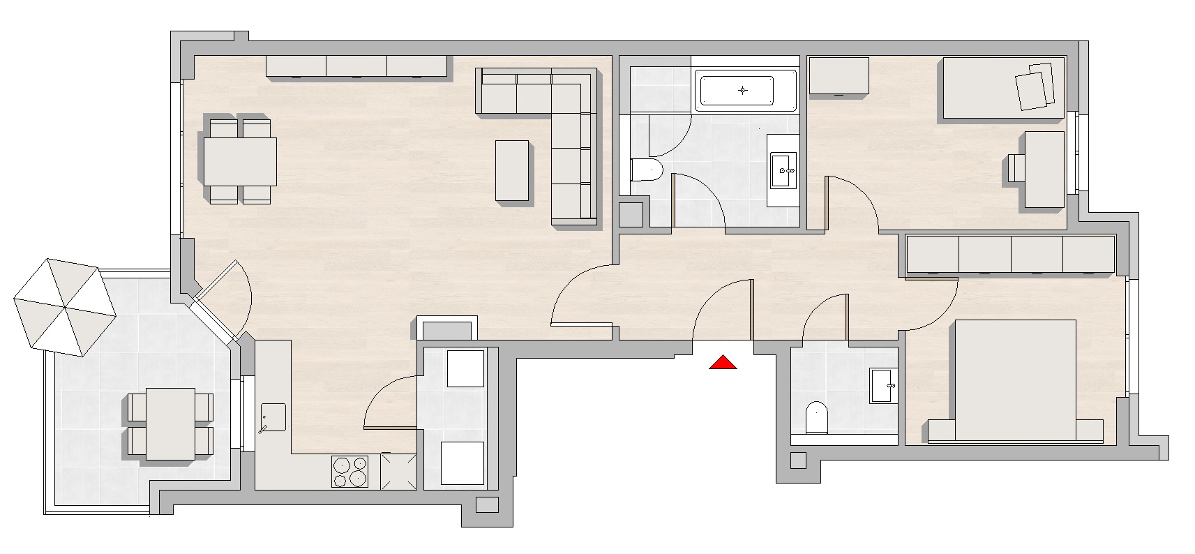 Die Architektur ist außergewöhnlich und trotzdem mit viel Gefühl in das Umfeld eingefügt. Die modernen Wohnungen überzeugen durch ihre gelungene Verbindung von Licht, Exklusivität und optimaler Nutzungsmöglichkeit. Die Wirkung der bodentiefen Fenster mit der feinen Unterteilung wird durch die transparenten Balkonbrüstungen unterstrichen. Farben, Formen und Materialien sind aufeinander abgestimmt.