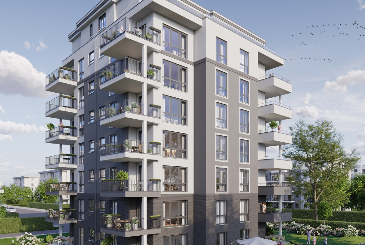 Das Gebäude ist mit viel Gefühl in das Umfeld eingefügt. Die modernen Wohnungen überzeugen durch ihre gelungene Verbindung von Licht, Exklusivität und optimaler Nutzungsmöglichkeit. Die Wirkung der bodentiefen Fenster mit feinen Untertei-lungen wird durch die transparenten Balkonbrüstungen unterstrichen. Farben, Formen und Materialien sind harmonisch aufeinander abgestimmt.