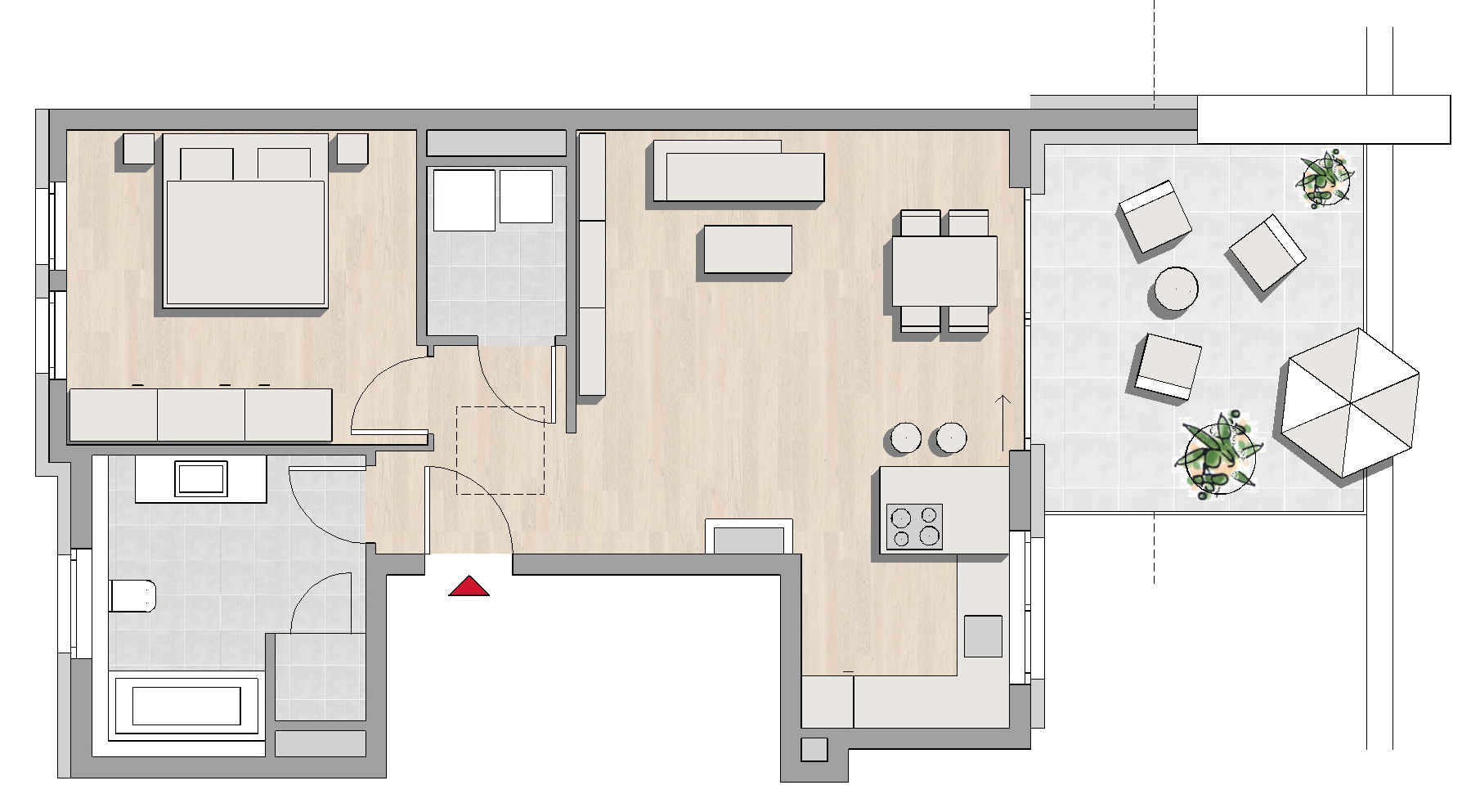 Es werden Kunststoff-Fenster mit Wärmedämmverglasung eingesetzt. Die Beschläge als Einhand-Dreh-Kipp- oder Einhand-Dreh-Beschläge in verdeckter Ausführung. Die Fenster in den Erdgeschoss-Wohnungen und die Fenster im Bereich der Loggien und Dachterrassen im Obergeschoss erhalten einbruchhemmende Beschläge. Alle Fenster, Loggien- und Terrassen- und Dachterrassentüren der Wohnungen in der senkrechten Fassade erhalten elektrisch betriebene Raffstores aus pulverbeschichtetem Aluminium. Die Badezimmer- und WC Fenster in der Fassade werden in satiniertem Glas ausgeführt. Die Wohnungseingangstüren in schallhemmender Ausführung erhalten einen Weitwinkelspion. Zu Ihrer Sicherung sind eine Mehrfachverriegelung sowie eine Türsprechanlage mit integriertem Videoüberwachungssystem vorgesehen. Die Bäder und WCs werden im Bereich der Dusche raumhoch und die restlichen Wände bis Oberkante Vorwand ausgeführt. Die Bäder sind mit Badewanne und Dusche ausgestattet. Der bodengleich geflieste Duschbereich mit Ablaufrinne und Fliesenmulde erhält eine Klarglas-Duschabtrennung. Oberhalb der Waschtischplatte wird in gleicher Breite ein beleuchteter Spiegel montiert. Die Bäder, Duschbäder, WCs und HWRs erhalten Fliesenboden. Die Wohn-, Koch-, Kind- und Schlafbereiche sowie die Dielen und Abstellräume erhalten Bodenbelag nach Mustervorlage mit passender Sockelleiste. Decken und Wände der Wohnungen werden mit Raufasertapete tapeziert und weiß angelegt. Die Wohnung ist mit einem Multimedia-Verteilerkasten sowie einer großen Zahl Elektroschaltern (Großflächenschalter) und Steckdosen ausgestattet. In jeder Wohnung befindet sich eine Datendose für Telefon- und Internet sowie ein TV-Kabelanschluss. In jeder Wohnung wird im Hauswirtschaftsraum eine Abluftwärmepumpe für die Warmwasserbereitung zum Heizen und zum Lüften installiert. Auf dem Dach wird eine Photovoltaik-Anlage zur Stromerzeugung installiert. Die Räume der Wohnungen werden mit einer Fußbodenheizung beheizt. Die Steuerung der Temperatur erfolgt in jedem Raum individuell. Die Wohnungen erhalten einen elektrisch betriebenen Kamin im Stil eines offenen Kamins. Zu jeder Wohnung gehört ein Kellerraum. Für die Bewohner des Hauses steht ein Gemeinschaftsraum zur Verfügung. Drei Personenaufzüge für bis zu 8 Personen verbindet alle Etagen des Hauses miteinander. Der Aufzug ist von der Untergeschossebene, den Hauseingängen und in den Geschossen stufenfrei erreichbar. Zur Erhöhung Ihrer Sicherheit wird der Zugang von der Tiefgarage ins Haus alarmgesichert. Um Ihnen die Wahl unter den Mustern und Farben zu erleichtern haben wir in unserer Firmenzentrale einen Bemusterungsbereich eingerichtet. Hier können Sie in aller Ruhe mit fachmännischer Beratung das für Sie Passende auswählen.