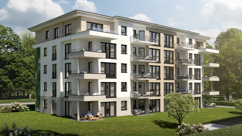 Das Haus ist mit viel Gefühl in das Umfeld eingefügt. Die modernen Wohnungen überzeugen durch ihre gelungene Verbindung von Licht, Exklusivität und optimaler Nutzungsmöglichkeit. Die Wirkung der bodentiefen Fenster mit feinen Unterteilungen wird durch die transparenten Balkonbrüstungen unterstrichen. Farben, Formen und Materialien sind harmonisch aufeinander abgestimmt.